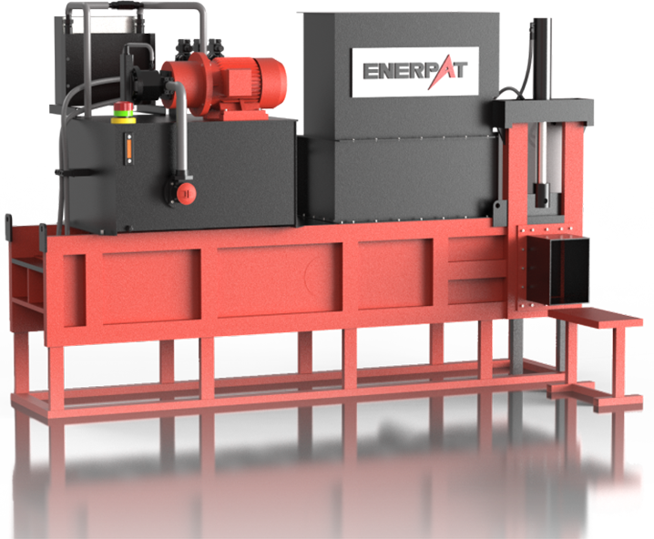 該設備利用兩個液壓油缸將松散的物料擠壓成型,壓縮到預先準備的塑料袋或者蛇皮袋中,達到減容打包的目的。