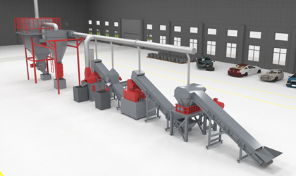 · 剪切式雙軸破碎機將汽車外殼進行預撕碎處理